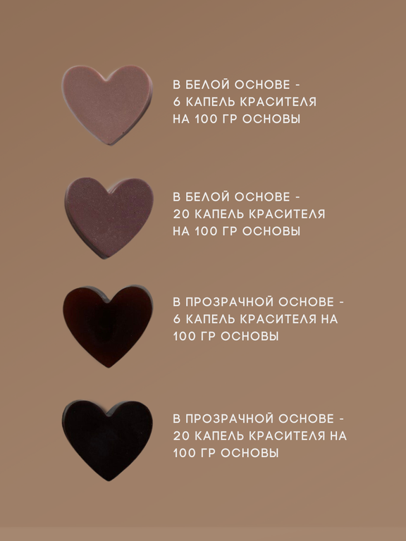 При минимальной дозировке сохраняют прозрачность основы, при большей получается яркий и насыщенный цвет.