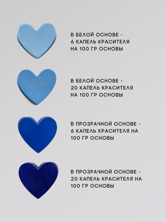При минимальной дозировке сохраняют прозрачность основы, при большей получается яркий и насыщенный цвет.