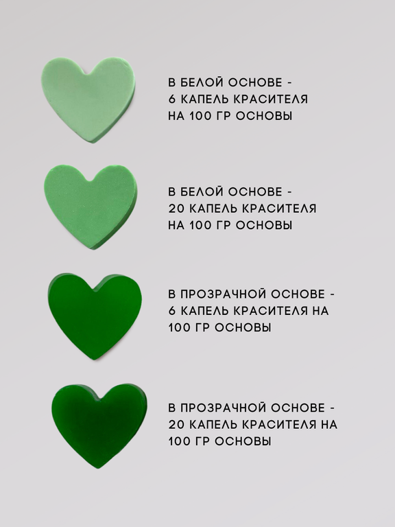 При минимальной дозировке сохраняют прозрачность основы, при большей получается яркий и насыщенный цвет.