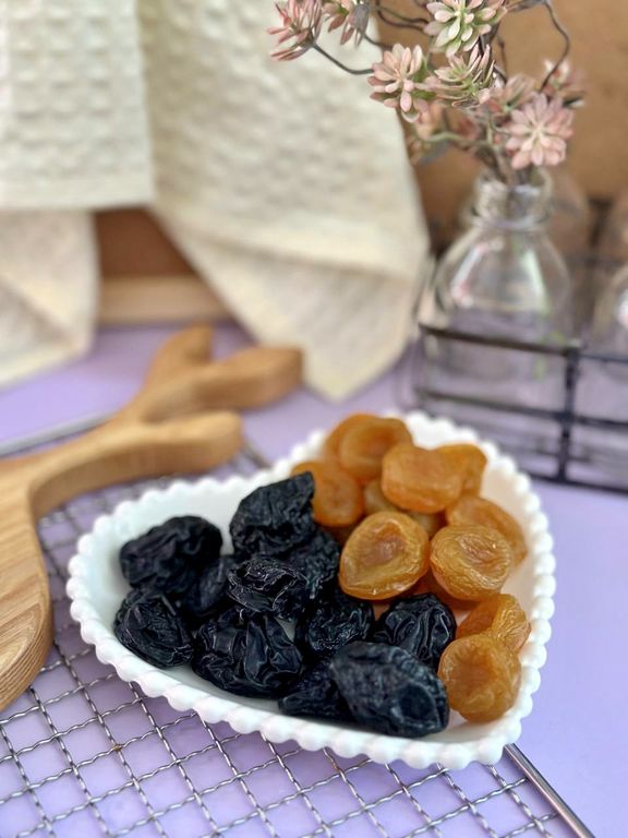 На форме 4 шт - курага 2 шт, чернослив 2 шт.